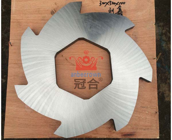 下面我們重點對單軸撕碎鋸刀片進行介紹。單軸撕碎機切削部分由刀輥、刀粒、定刀和篩網(wǎng)構(gòu)成,單軸撕碎機的刀粒與定刀之間的小安裝間隙為0.1mm,通過刀輥進行高速旋轉(zhuǎn),使得刀粒與定刀形成切削,然后通過一次切削,如果物料的尺寸小于篩網(wǎng)的孔徑,則會從網(wǎng)孔出料,否則物料將在刀箱內(nèi)進行多次切削,一直到達到出料尺寸為止方能出料。